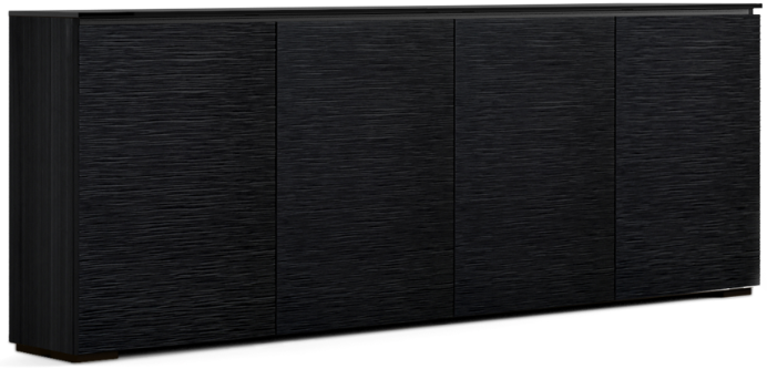 Black Oak finish with Tall Grass Texture & Black Glass top. Features infinitely adjustable, black interior shelves, and Built-in ventilation louvers for better air flow to keep equipment cool.