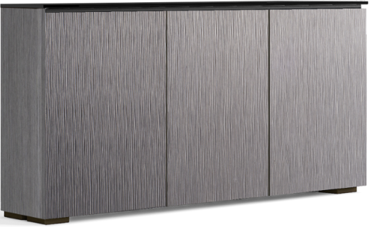 The light look and feel of tall grasses is finely set in a vertical textured pattern. Alpi gray oak with black glass top and black feet work in unison, creating the cabinet’s hi-tech facade.